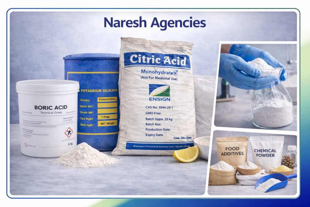 At Naresh Agencies, we take pride in supplying high-quality industrial and specialty chemicals that support your business operations with consistency and trust. Whether you are a manufacturer, distributor, or industrial buyer, we are committed to delivering precise, dependable, and quality-assured chemical products to meet your requirements. Connect with us today to discuss your chemical sourcing needs and build a long-term partnership.